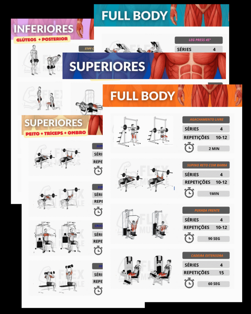 Com instruções práticas e ilustrações que mostram a execução correta de cada exercício, você terá um guia completo para potencializar cada treino e conquistar resultados reais mais rápido!